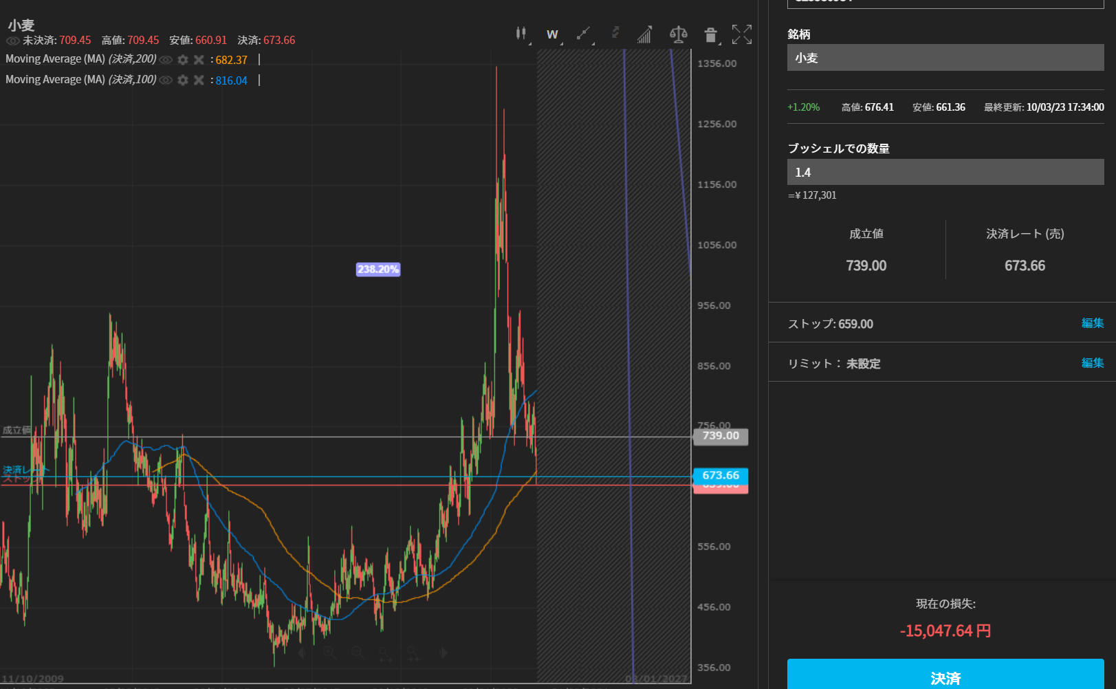 先物で小麦相場がなかなか上がらない。。。