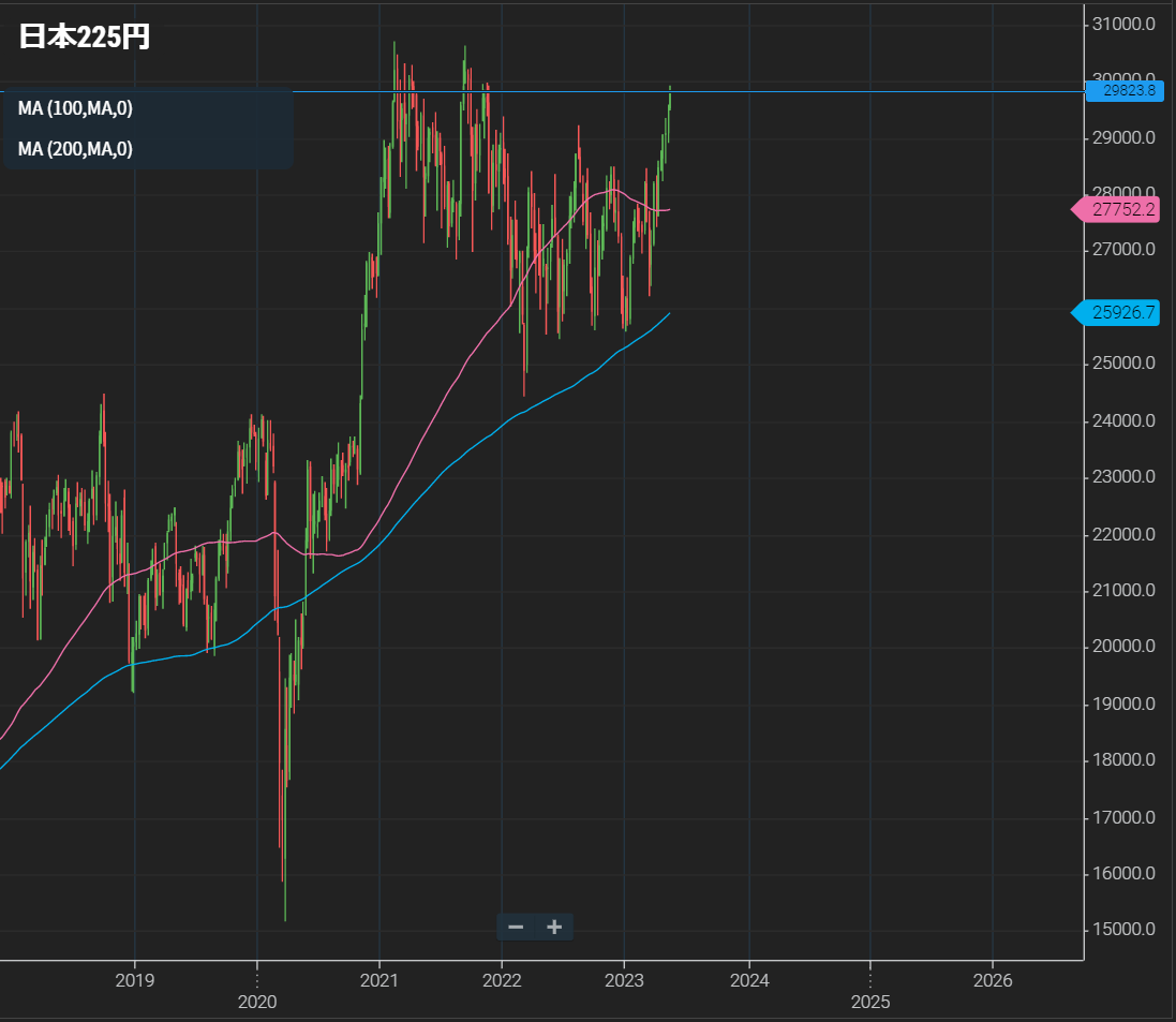 今後3万円を超えていくにしても、一息つくんじゃないでしょうか。という期待を込めて利確。29200円前後に適当に買いで指値を入れています。