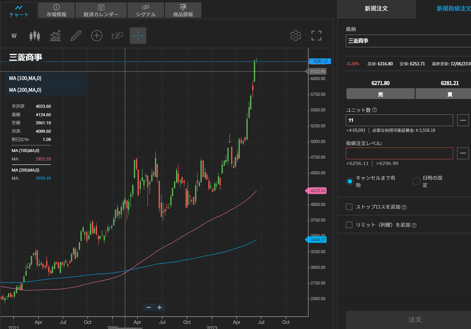 三菱商事は6,000円を超えていてちょっと売ったり買ったりするのに60万円必要ですが、iforexなら証拠金3500円から購入可能です。3500円で7万円相当分です。