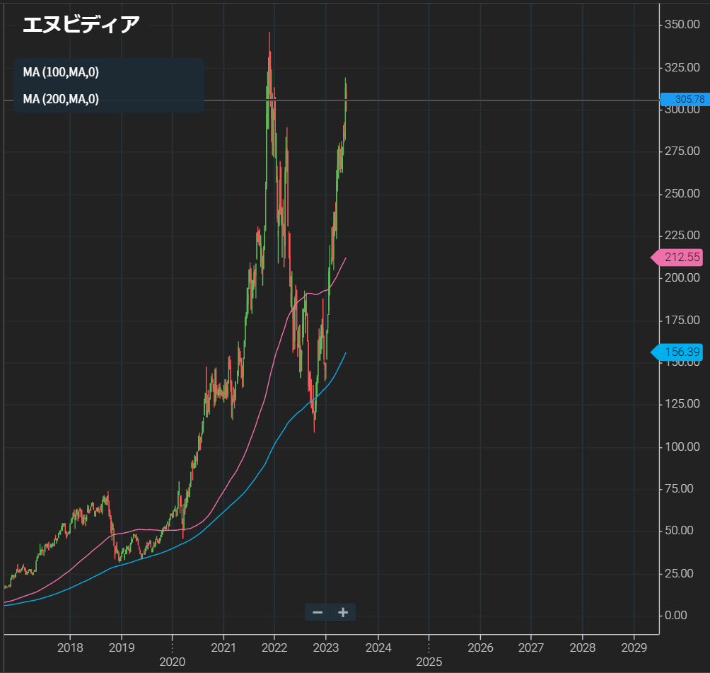 メタバースが大コケしてGPUの需要が減りそうだということも下落の要因だったと思いますが、NVIDIAだけじゃなくてメタ自体も2倍以上に値を戻してますし本当に難しいですね。